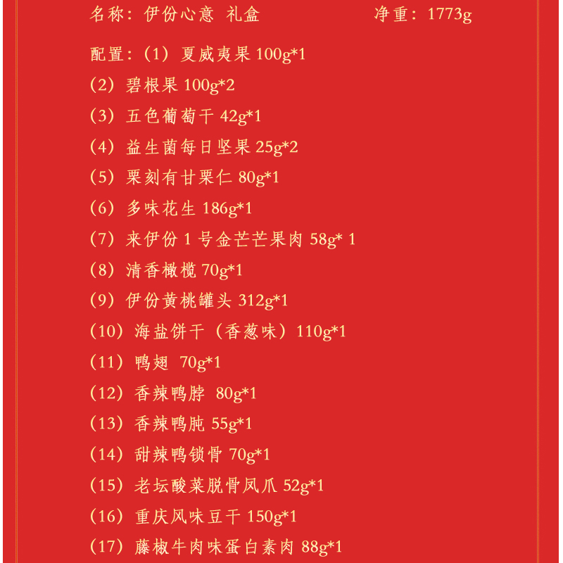 商品名称:来伊份 伊份心意礼盒休闲零食礼盒1773g