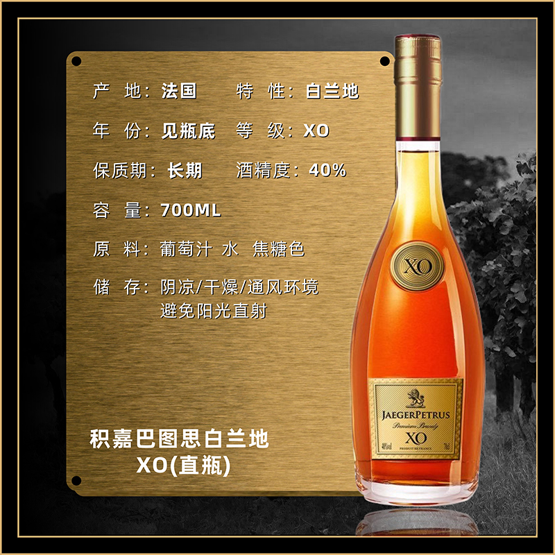 商品名称:积嘉巴图思 XO洋酒 白兰地 40度 直瓶 1瓶*700ml
