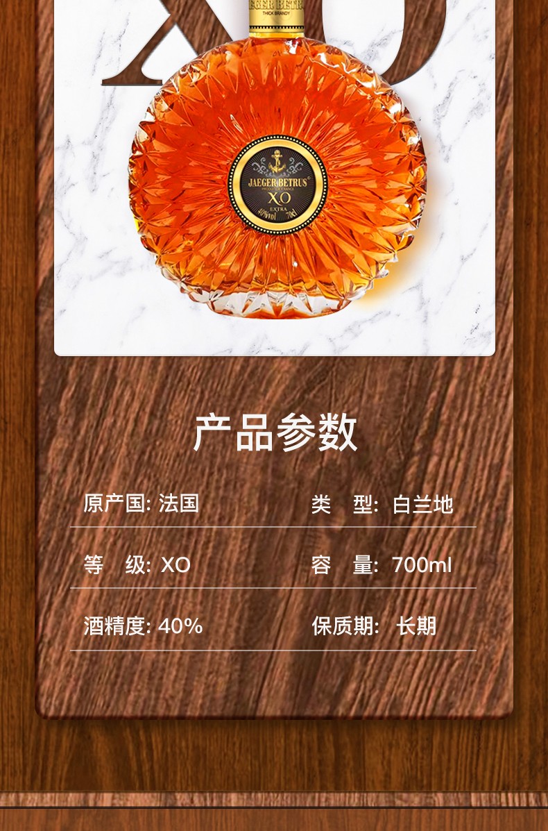 商品名称:积嘉巴图思 XO洋酒 白兰地 40度 圆瓶 1瓶*700ml