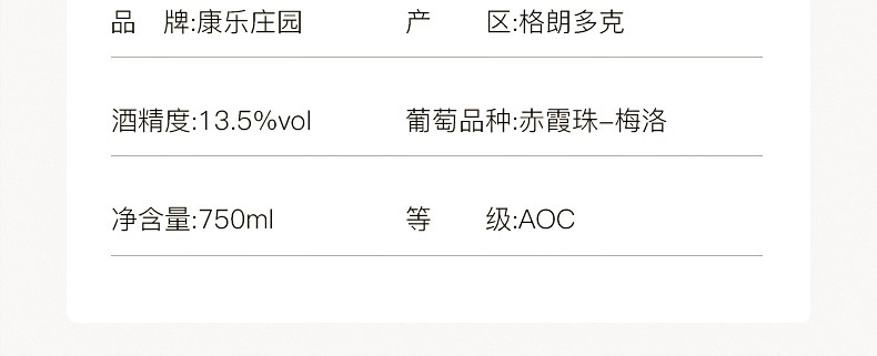 商品名称:康乐庄园 混酿葡萄酒 商务用酒 迪伦(饱满)1瓶*750ml