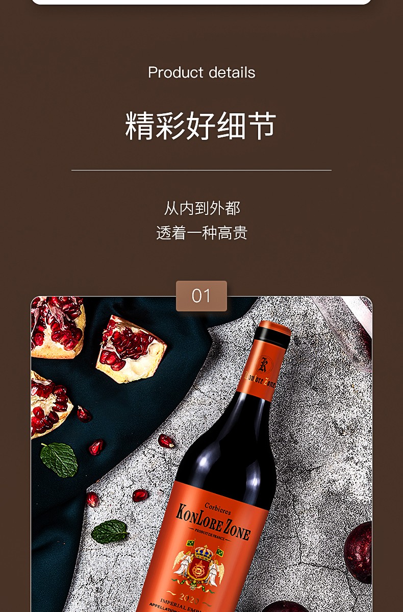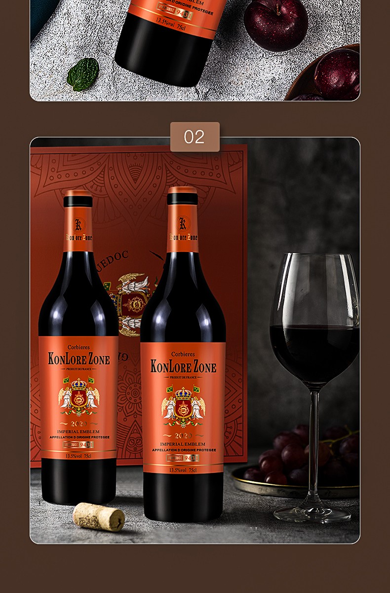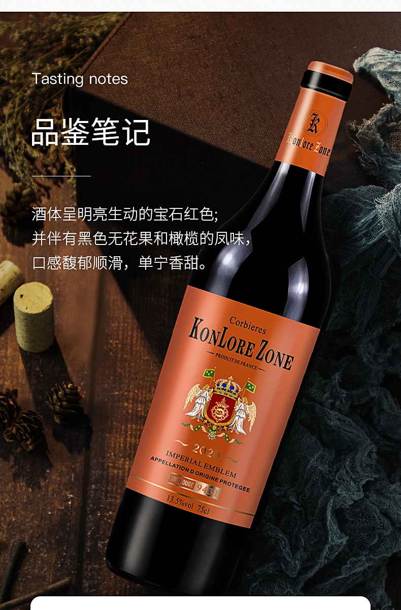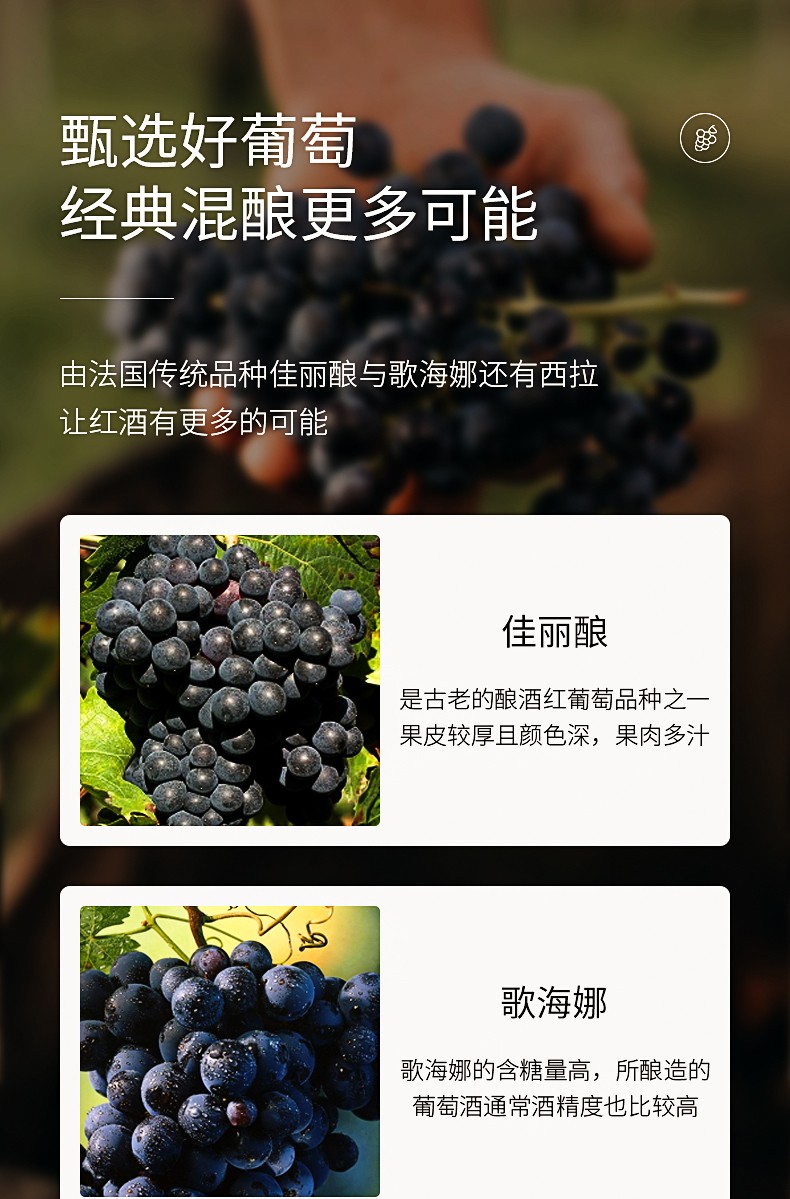 商品名称:康乐庄园 法国红酒混酿 葡萄酒 皇家干红礼盒款 1箱*6瓶*750ml