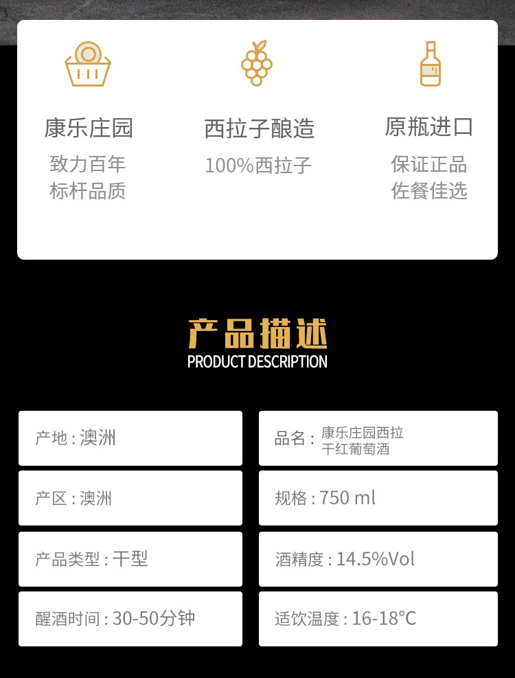 商品名称:康乐庄园 法国红酒混酿葡萄酒 西拉(果香)1瓶*750ml