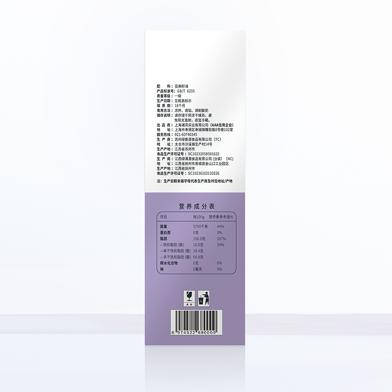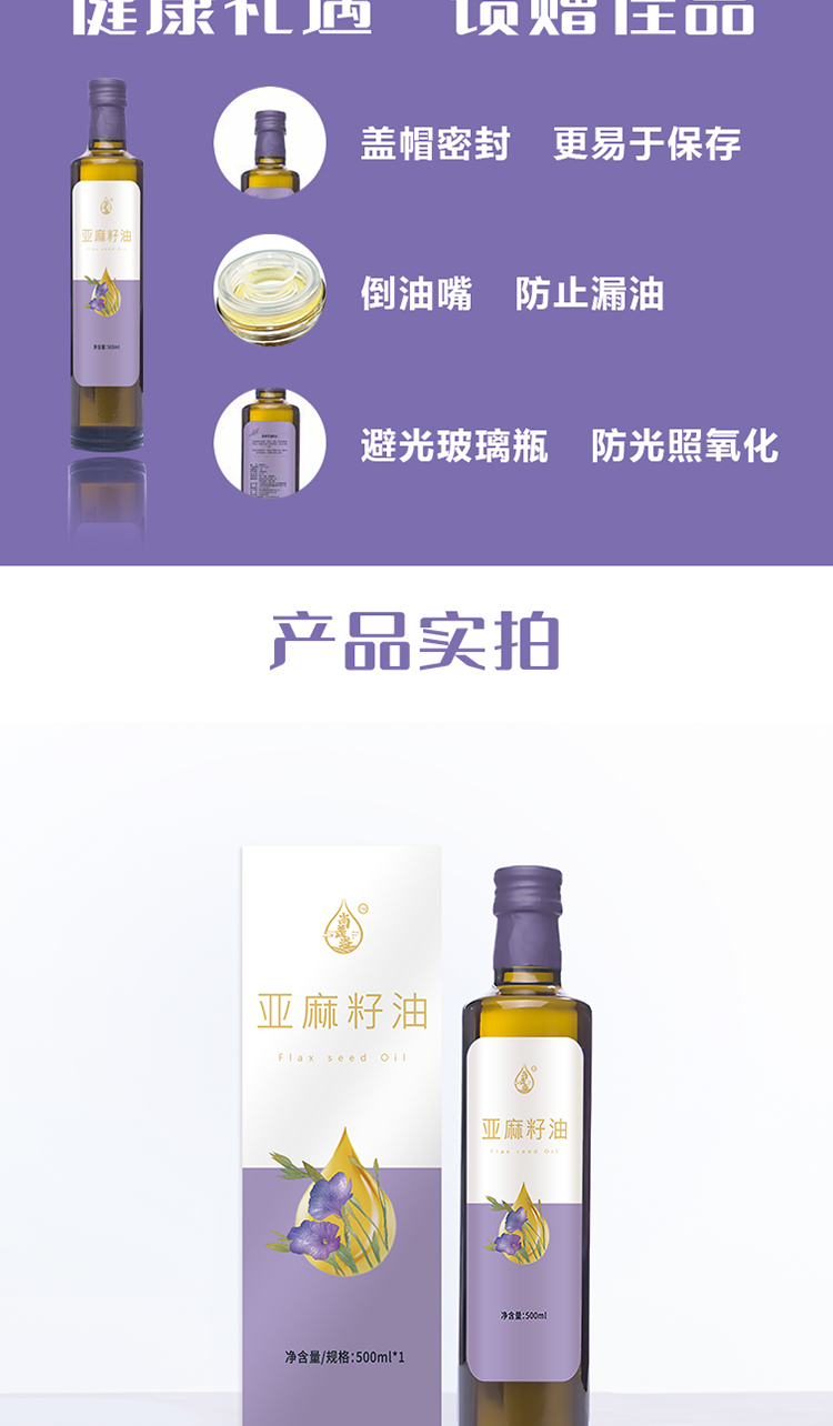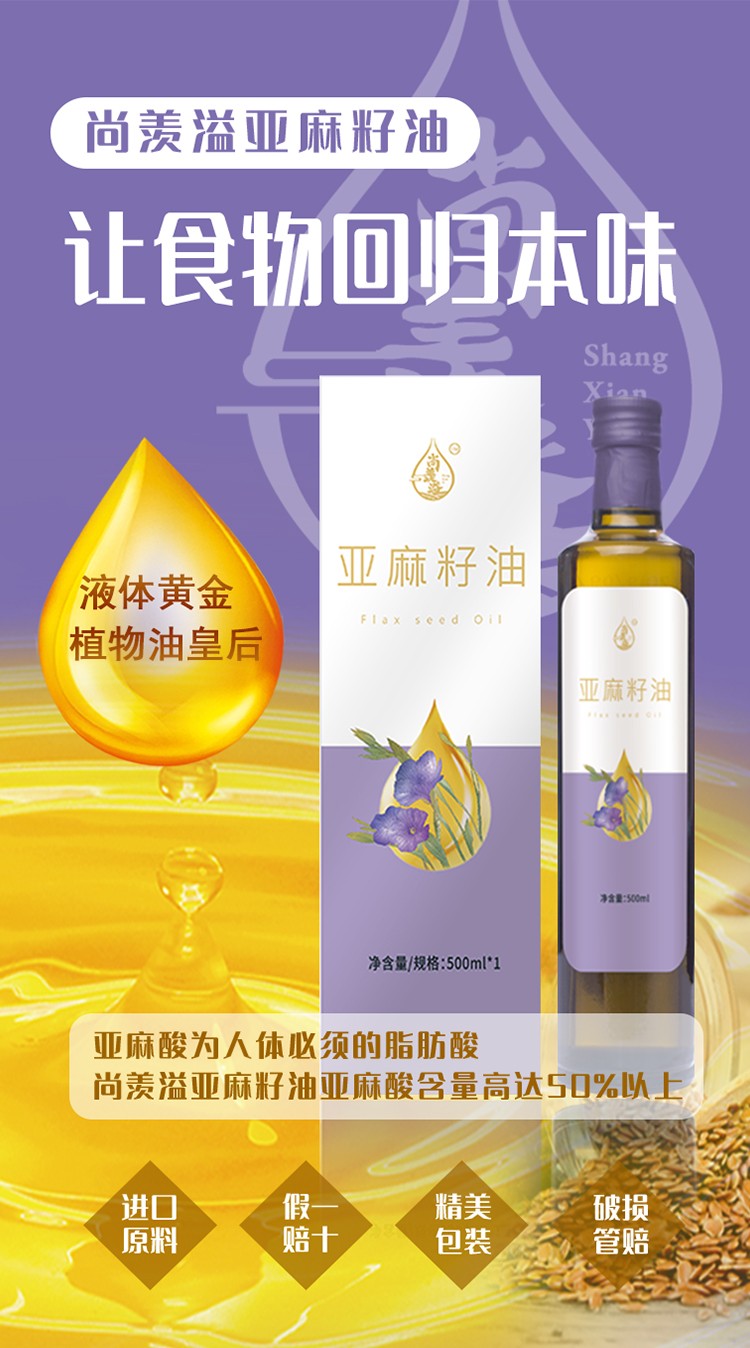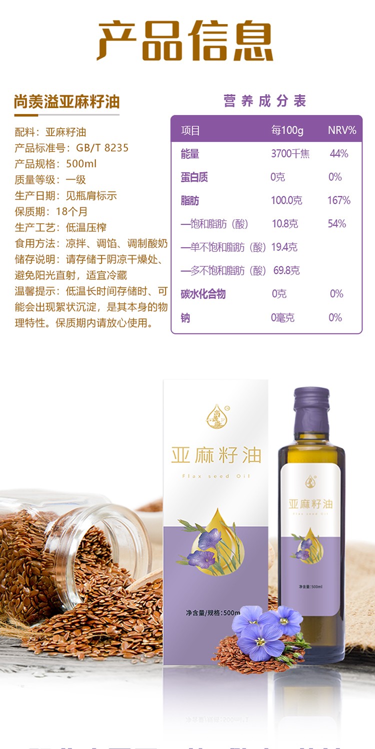 商品名称:尚羡溢 亚麻籽油单礼盒500ml 6974522680009