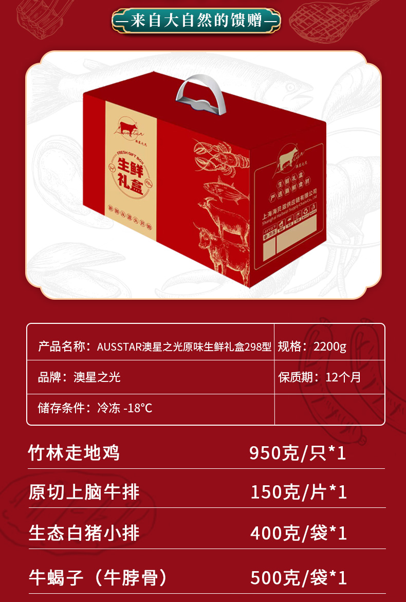 商品名称:AUSSTAR澳星之光原味生鲜礼盒 298型2200g