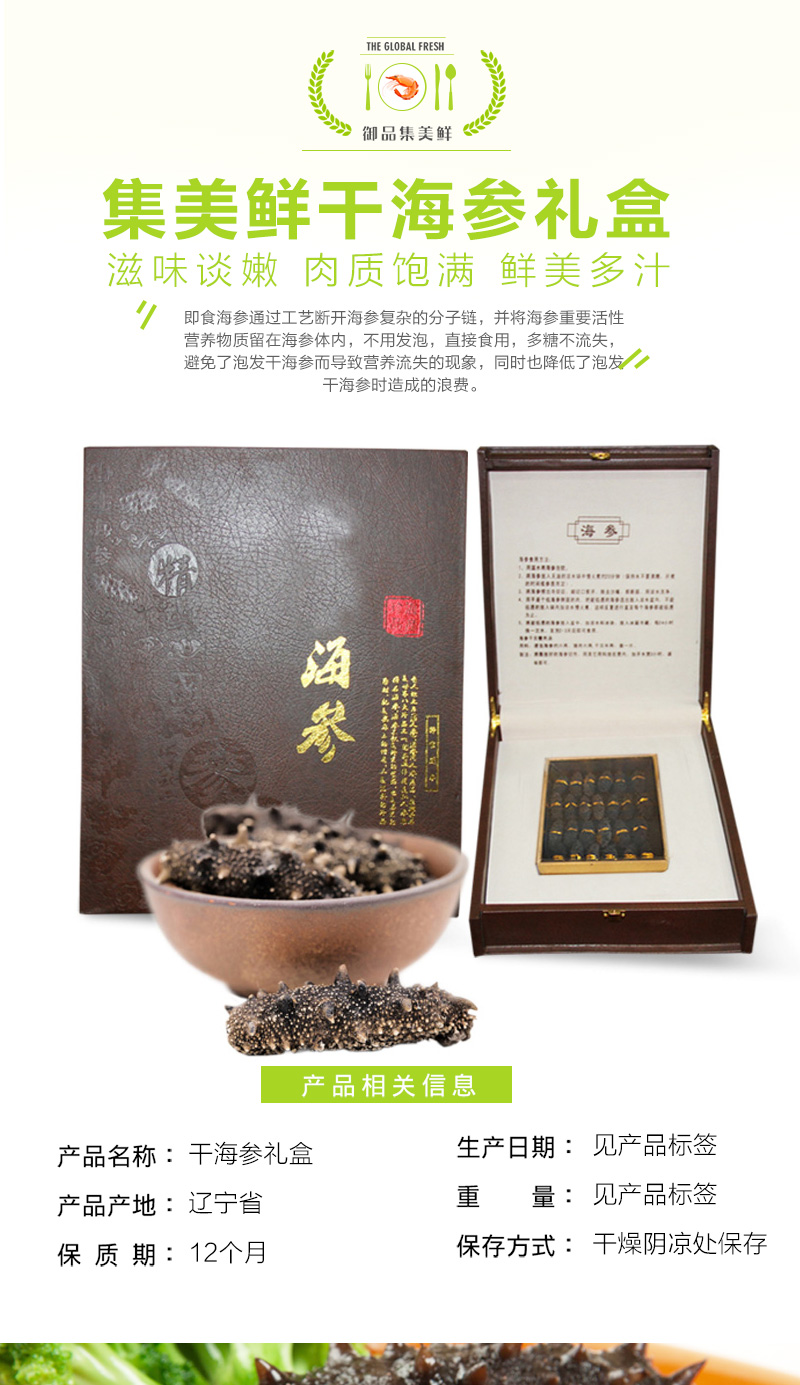 商品名称:集美鲜 598型干海参礼盒 8条/50g