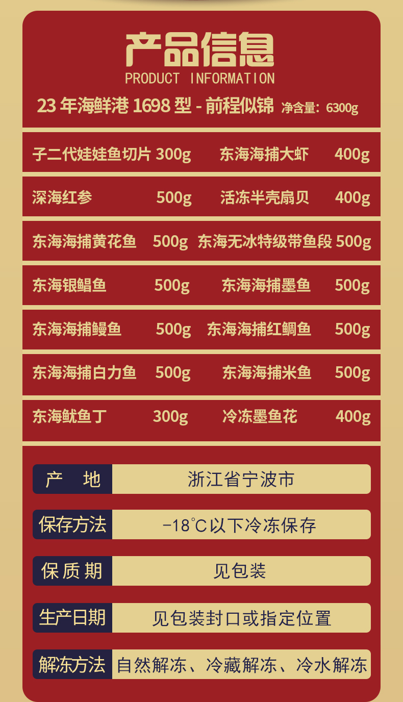 商品名称:海鲜港 23年海鲜港1698型-前程似锦 6300g 6972699431424