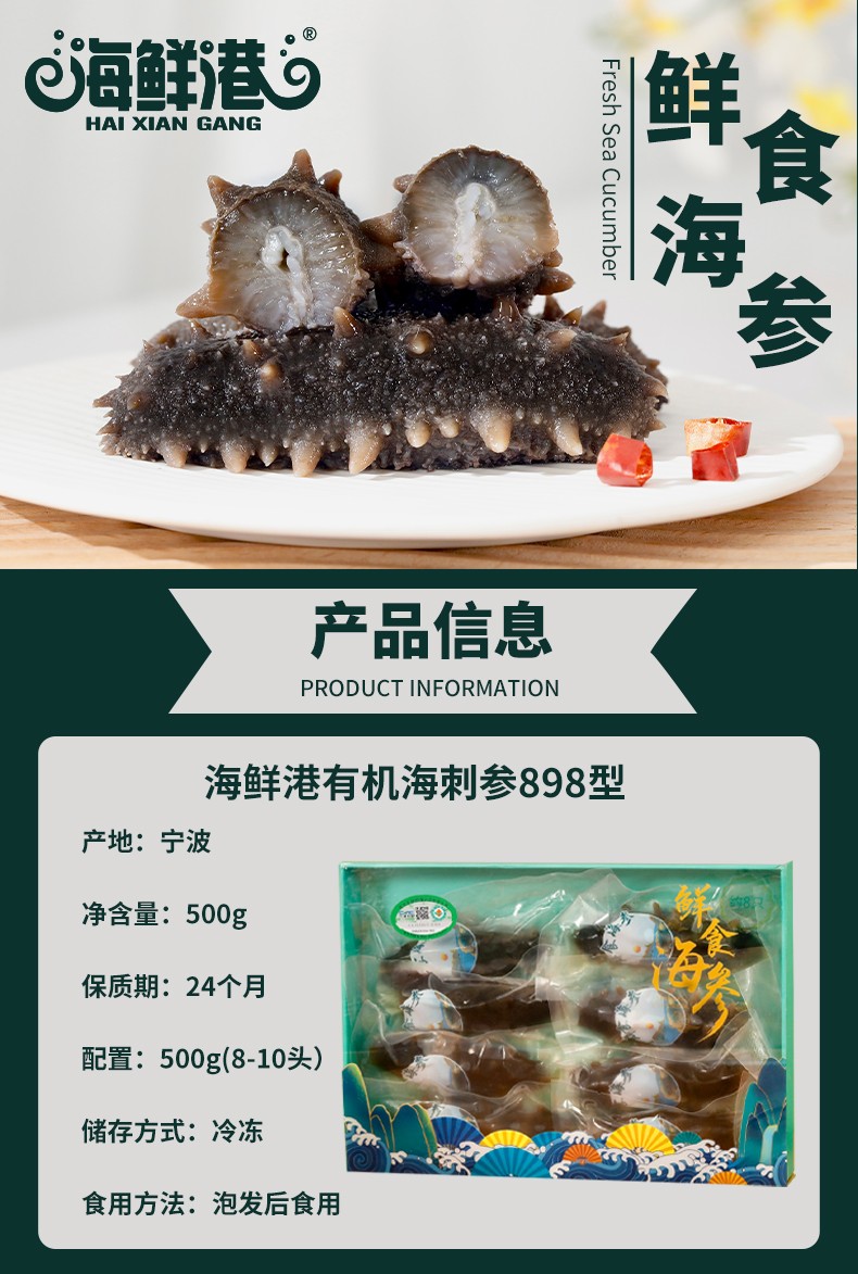 海鲜港 有机即食海刺参898型 500g 6972699431523