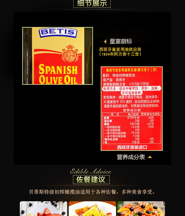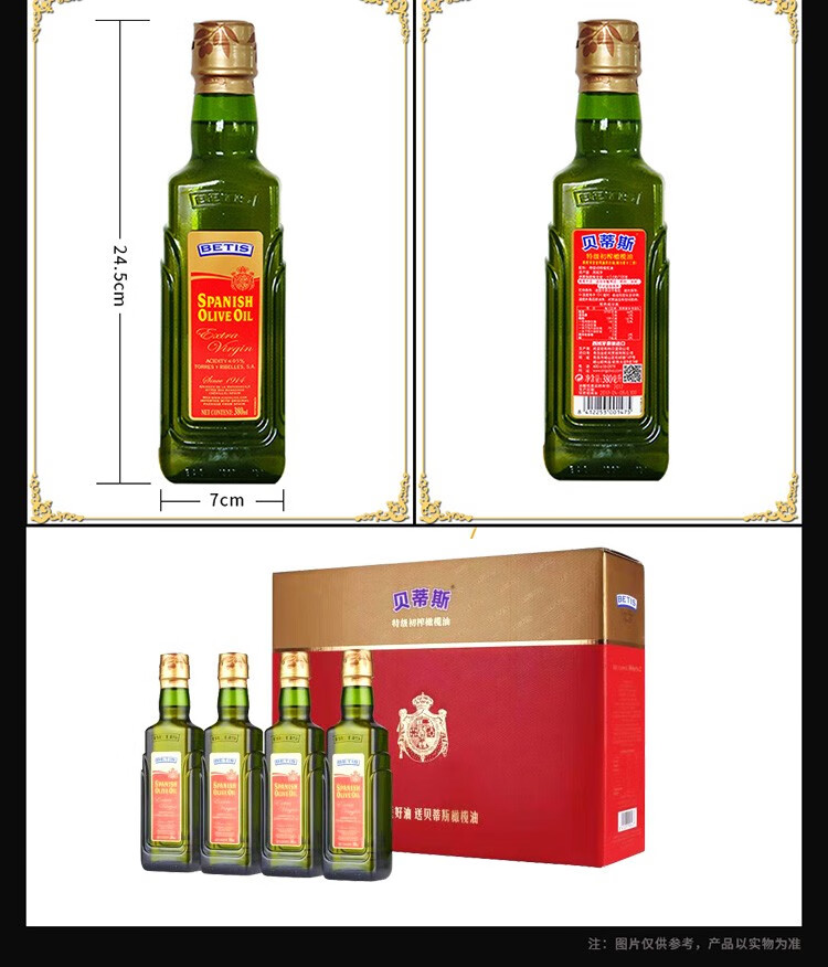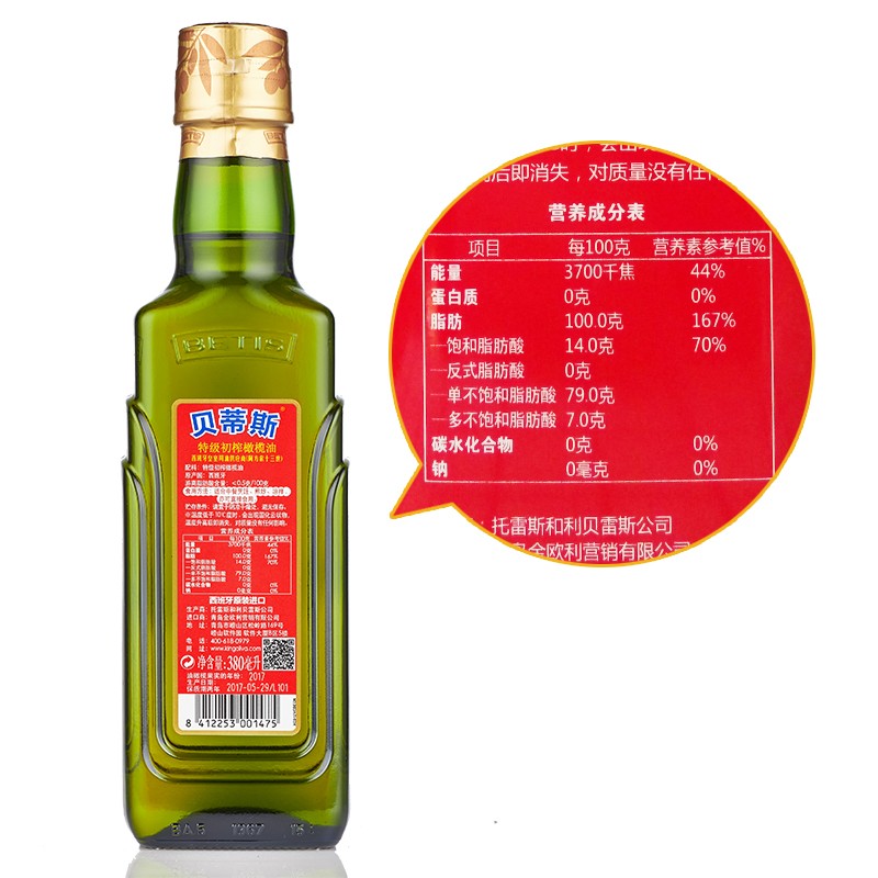 商品名称:贝蒂斯特级初榨橄榄油瓶装380ML*4礼盒 8412253900679