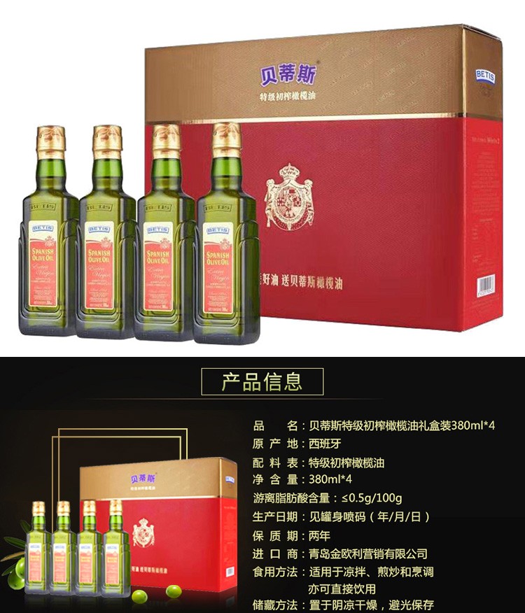 贝蒂斯特级初榨橄榄油瓶装380ML*4礼盒 8412253900679