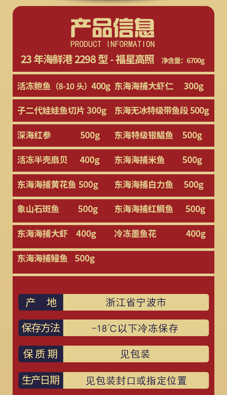 商品名称:海鲜港 23年海鲜港2298型-福星高照 6700g 6972699431431