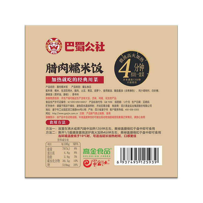 商品名称:巴蜀公社 腊肉糯米饭 350g*3盒 6937495125939