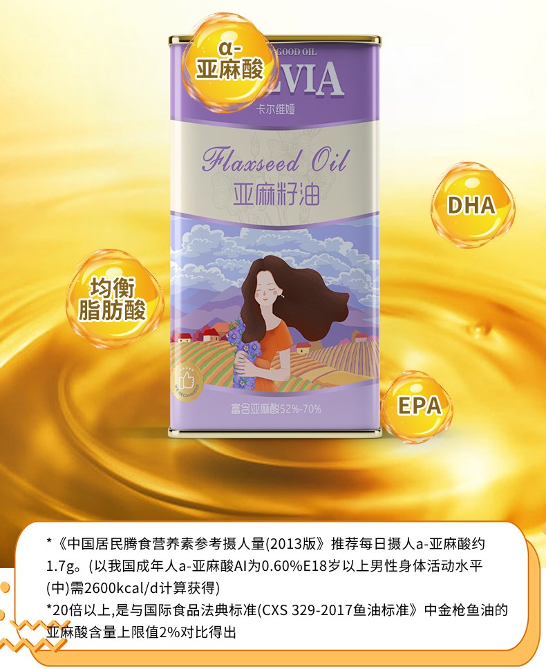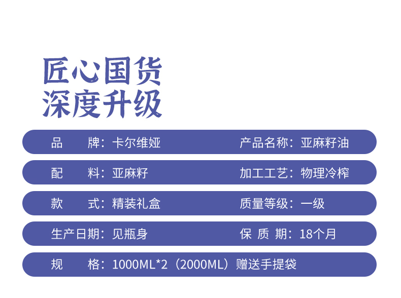 商品名称:卡尔维娅(甄选)亚麻籽油精装礼盒 1000ML*2