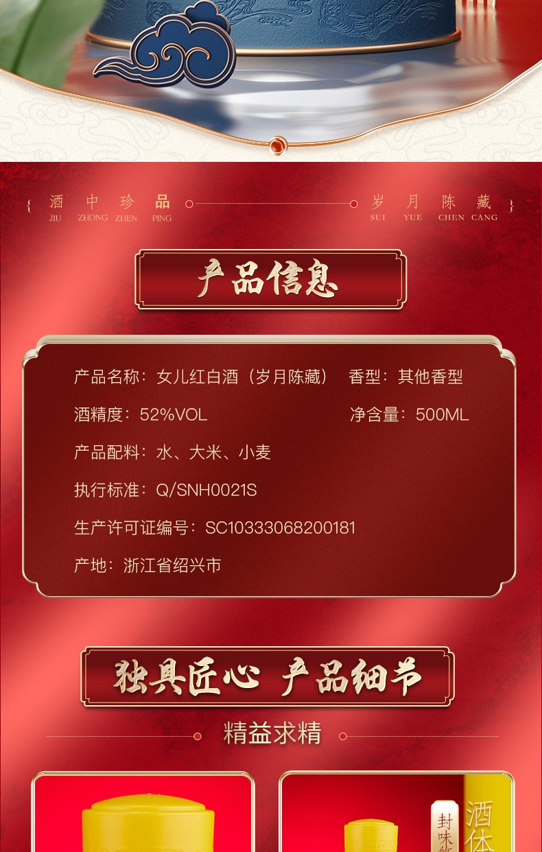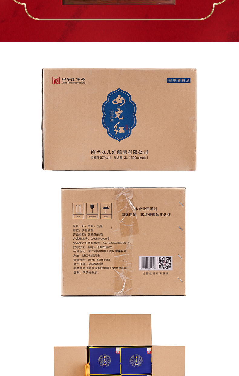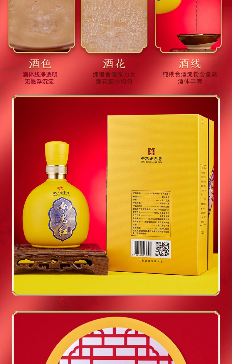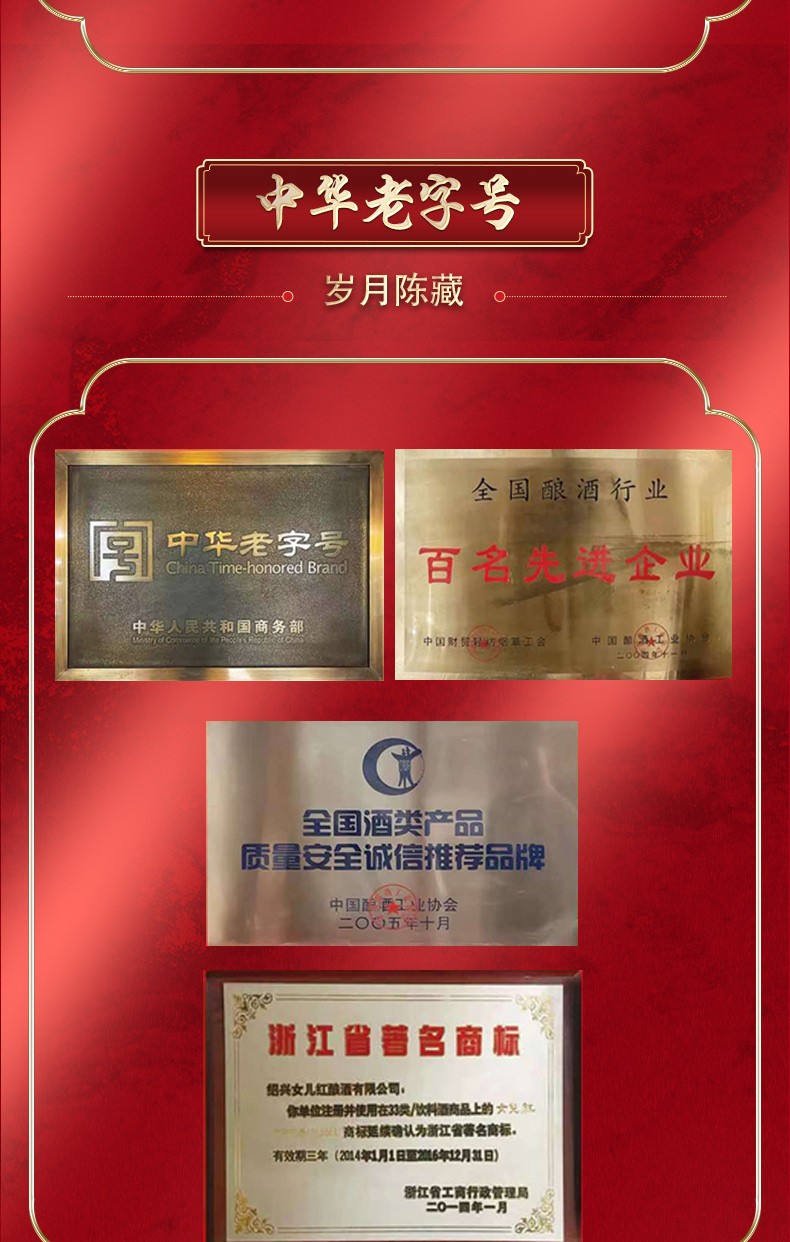 商品名称:绍兴女儿红纯粮食酒52度白酒高度酒礼盒装岁月陈藏500ml*6