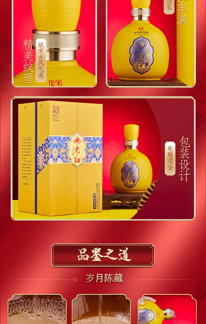 绍兴女儿红纯粮食酒52度白酒高度酒礼盒装岁月陈藏500ml*6