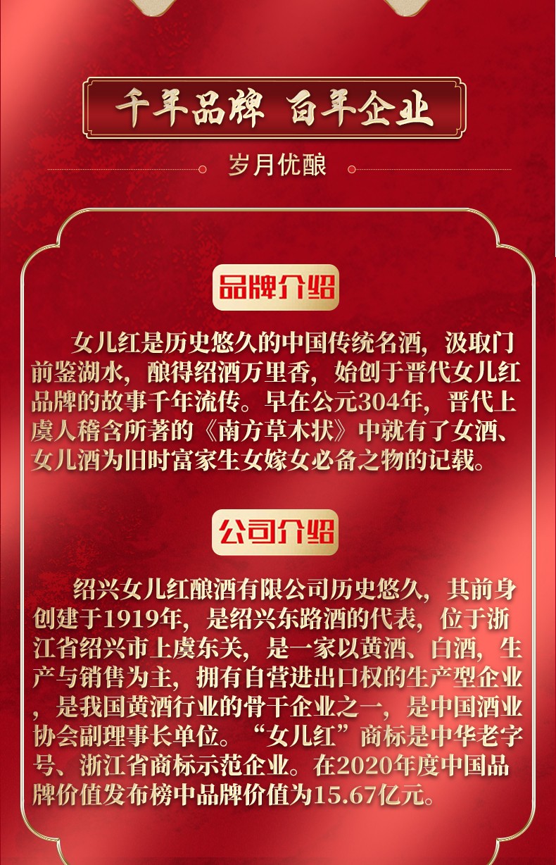 绍兴女儿红纯粮食酒52度白酒高度酒礼盒装岁月优酿500ml*6