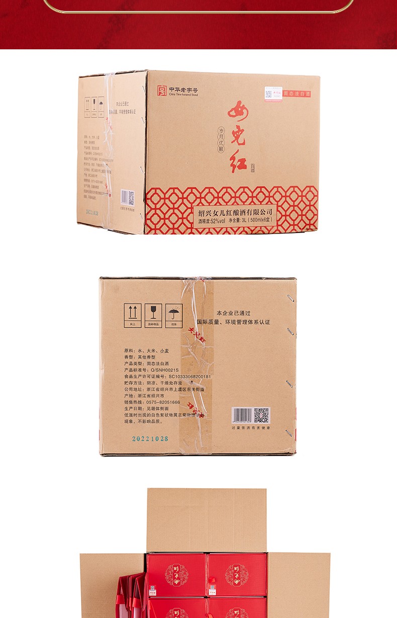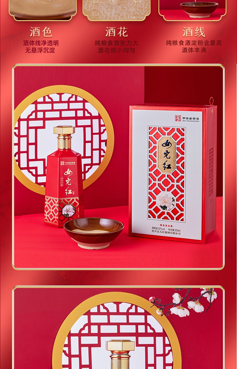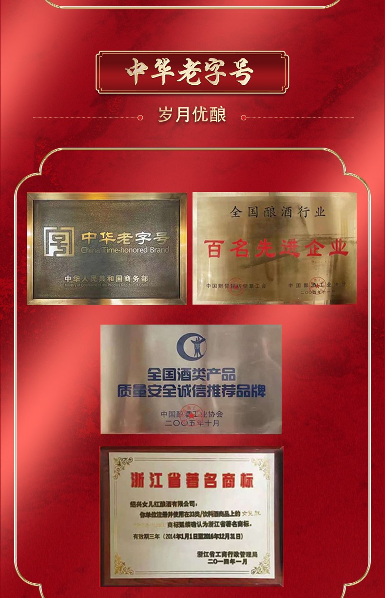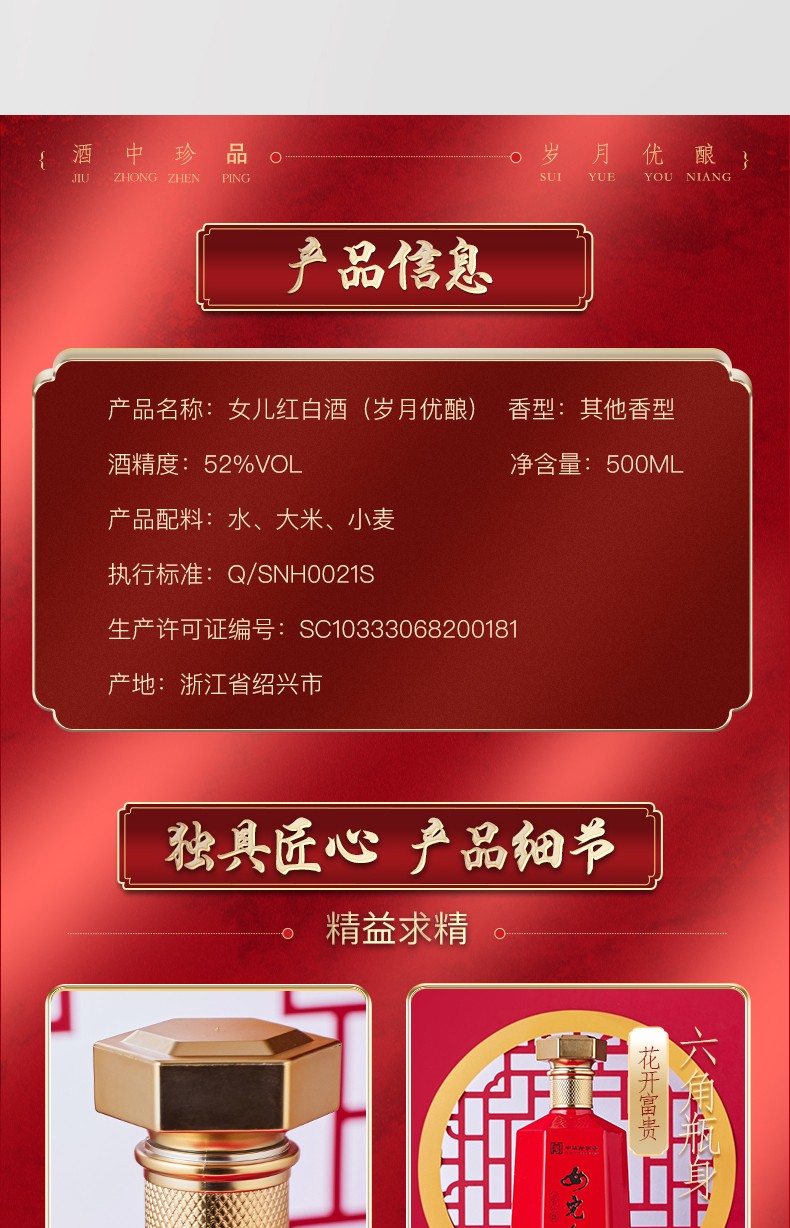 商品名称:绍兴女儿红纯粮食酒52度白酒高度酒礼盒装岁月优酿500ml*6