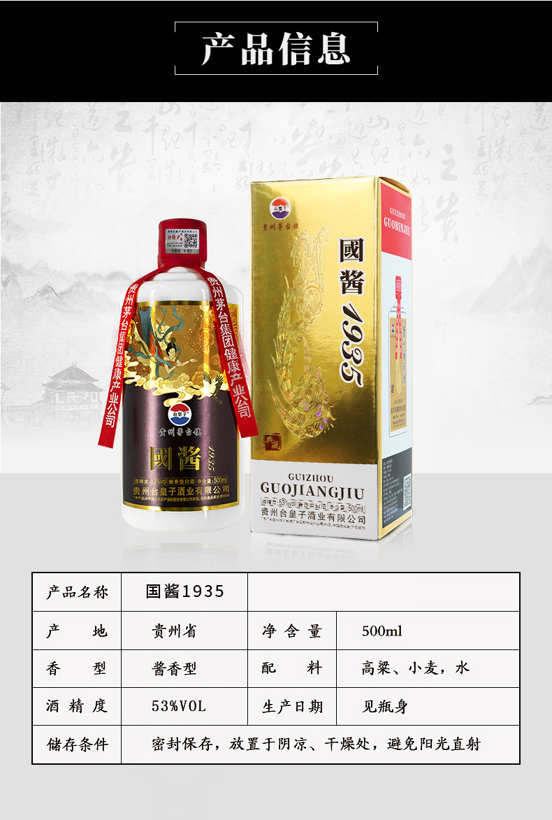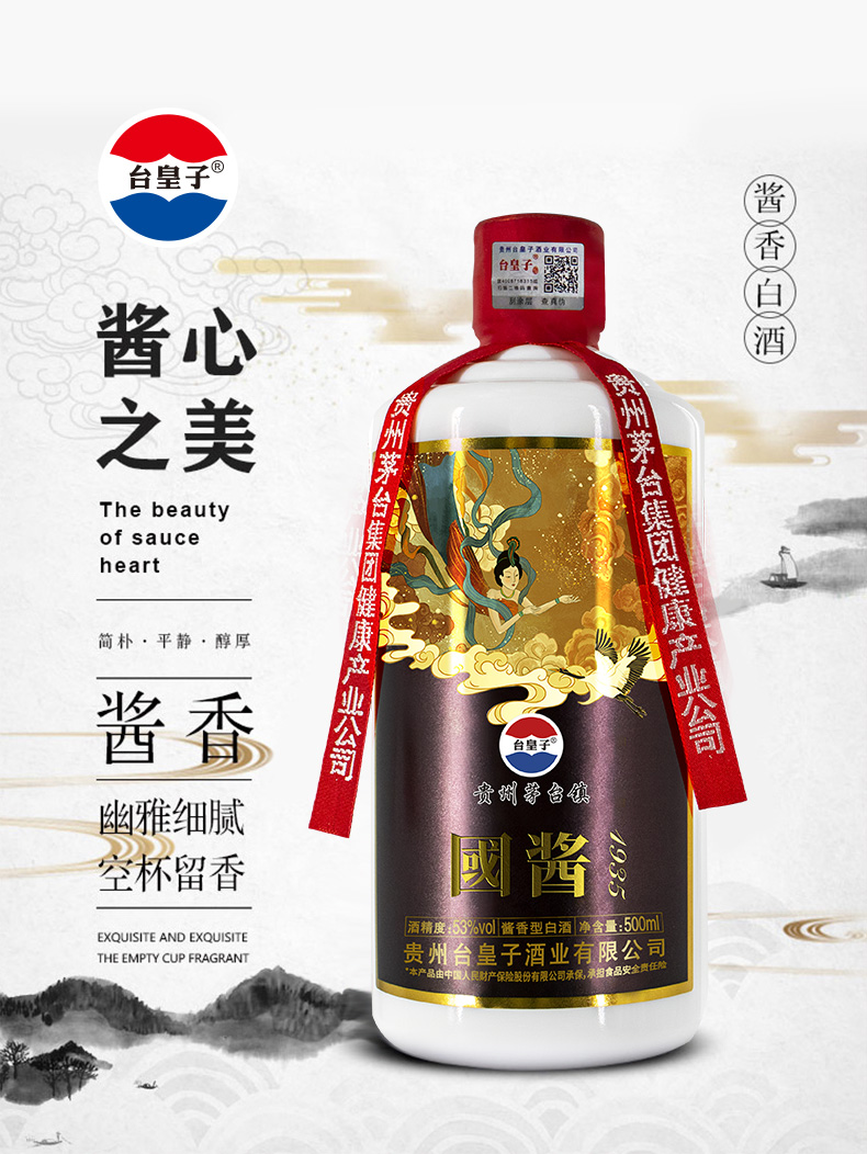 商品名称:台皇子 国酱1935酱香型白酒 53度 1箱*6瓶*500ml