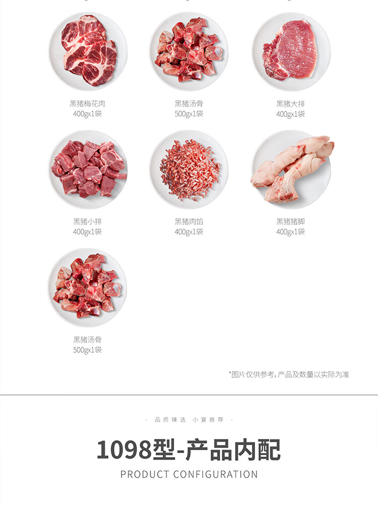 商品名称:丁小宴尊品黑猪礼盒商务团购送礼黑猪肉馅黑猪汤骨 尊品黑猪458型*2500g 6975557501574