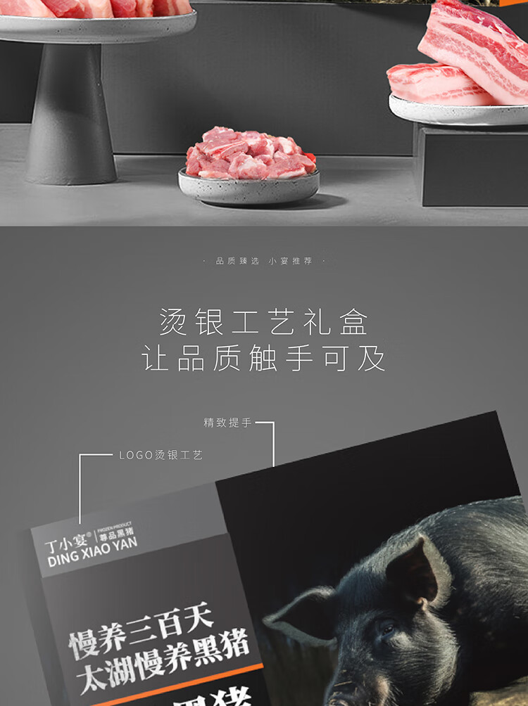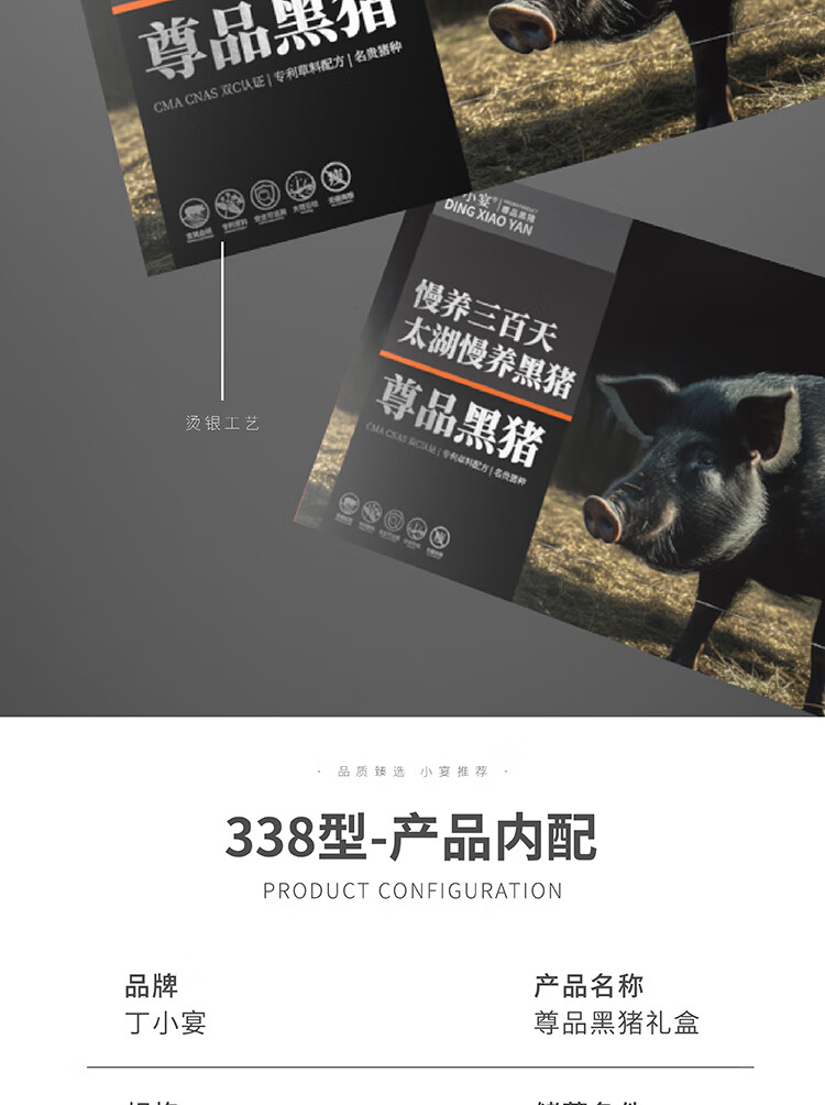 商品名称:丁小宴尊品黑猪礼盒商务团购送礼黑猪肉馅黑猪汤骨 尊品黑猪568型*2900g 6975557501581