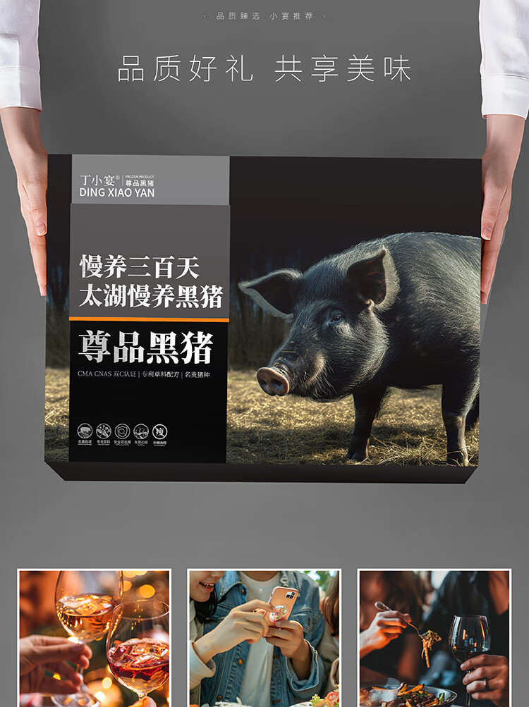 丁小宴尊品黑猪礼盒商务团购送礼黑猪肉馅黑猪汤骨 尊品黑猪568型*2900g 6975557501581