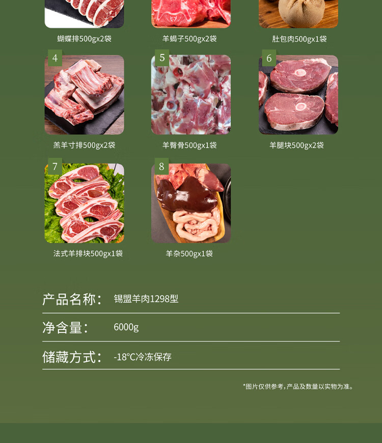 商品名称:丁小宴锡盟羊肉礼盒 羊肉生鲜食材商务送礼礼盒 羊肉礼盒458型*2500g 6975557501338