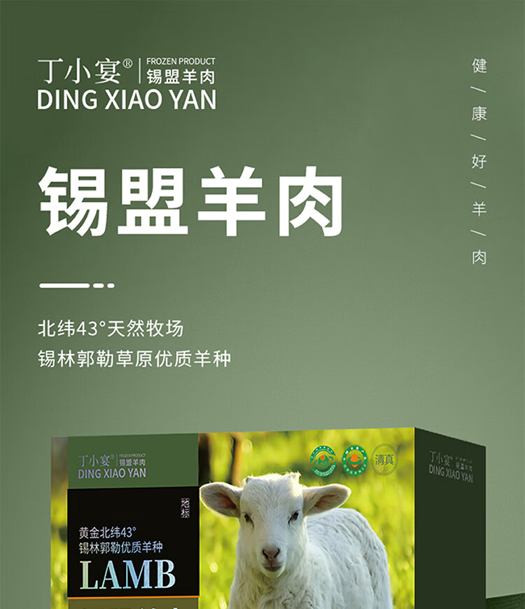 商品名称:丁小宴锡盟羊肉礼盒 羊肉生鲜食材商务送礼礼盒 羊肉礼盒568型*3000g 6975557501345