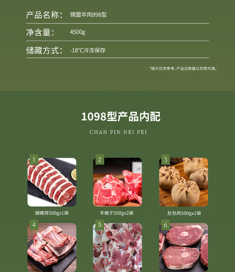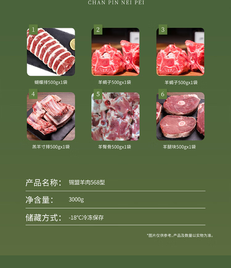 商品名称:丁小宴锡盟羊肉礼盒 羊肉生鲜食材商务送礼礼盒 羊肉礼盒668型*3500g