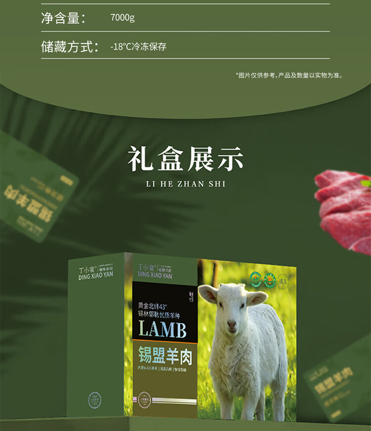 商品名称:丁小宴 锡盟羊肉礼盒898型 4500g 6975557501369