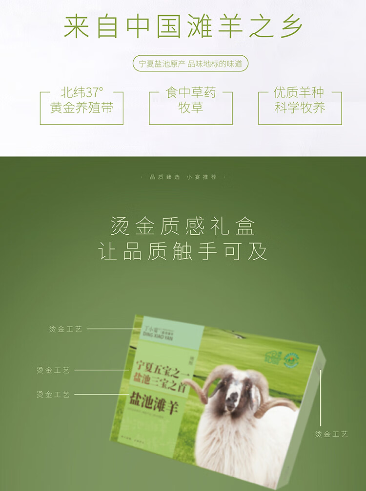 商品名称:丁小宴盐池滩羊礼盒羊肉礼盒滩羊羊肉切块 滩羊礼盒1298型·4500g 6975557501543