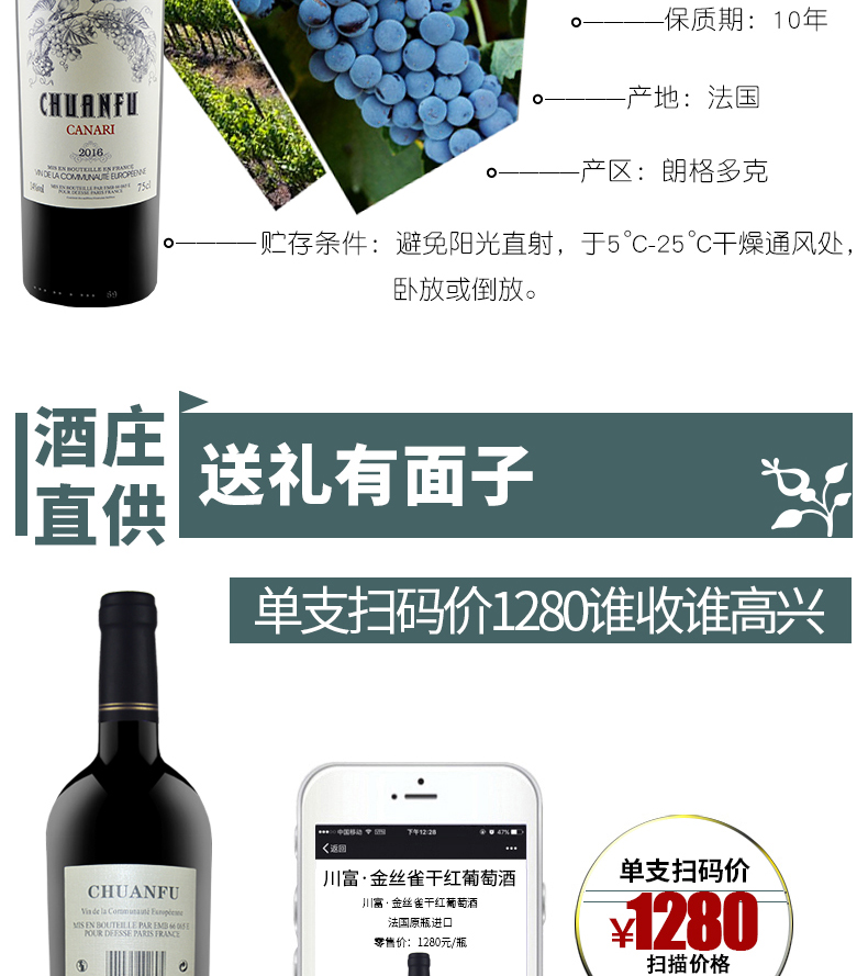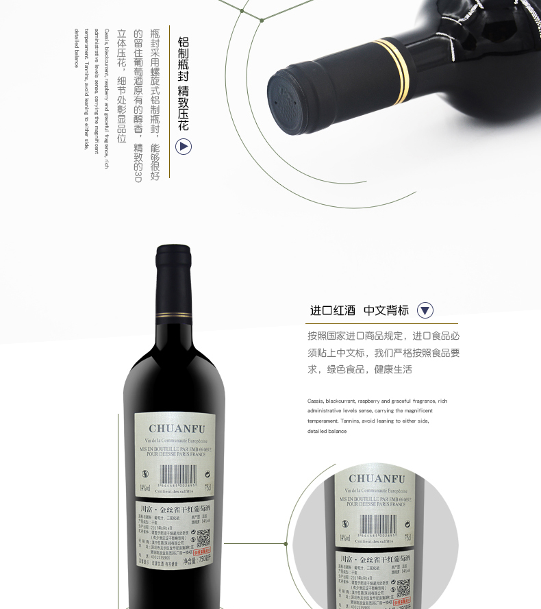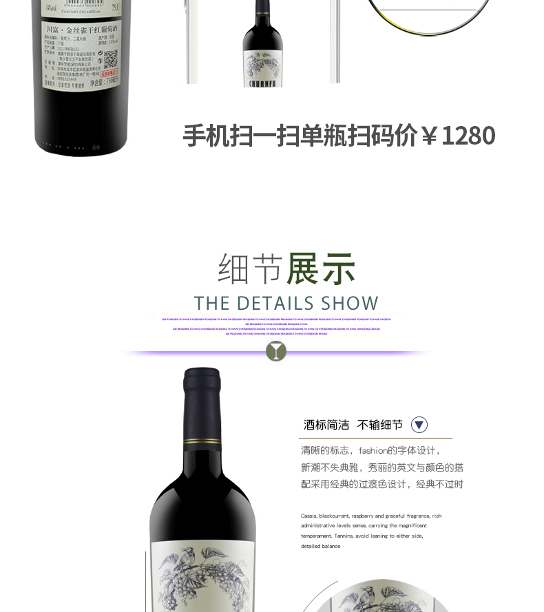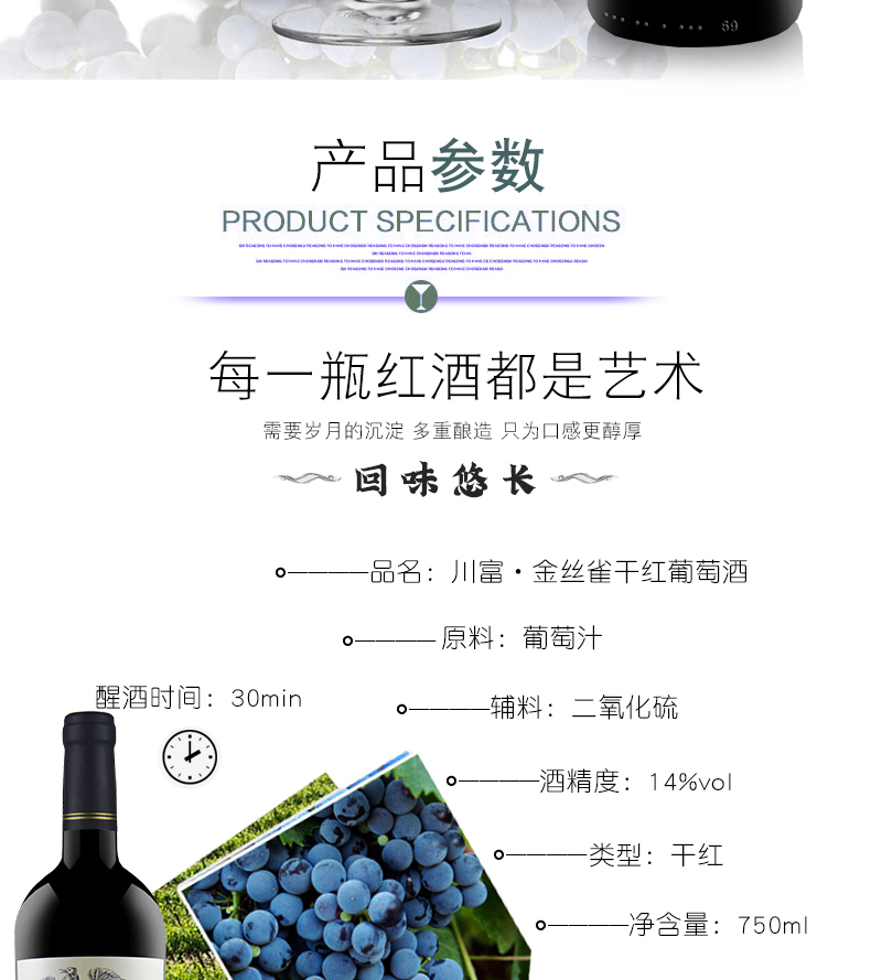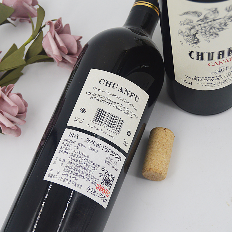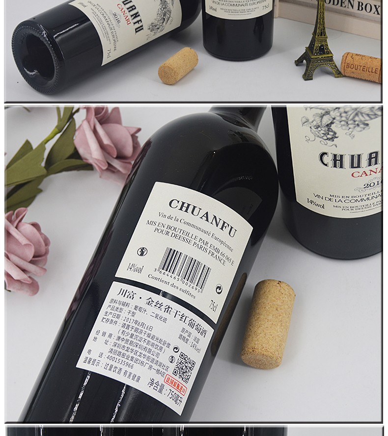 商品名称:川富金丝雀 干红葡萄酒 750ML*6支*1箱