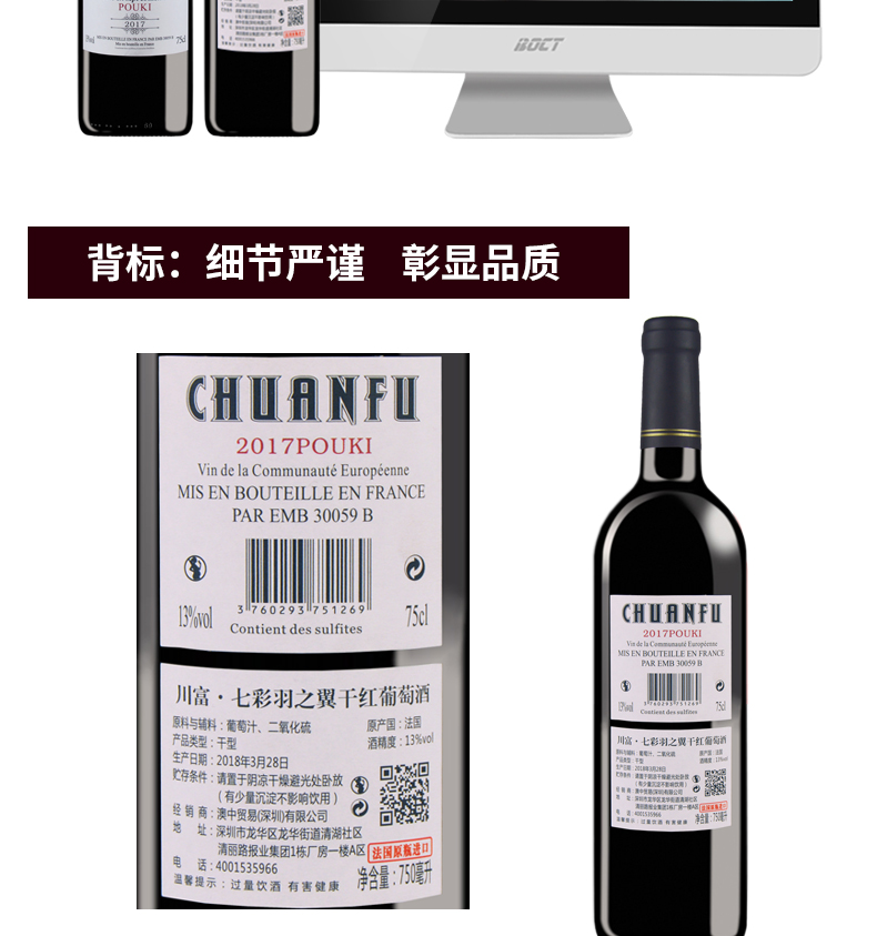 商品名称:川富七彩羽之翼 干红葡萄酒 750ML*6支*1箱