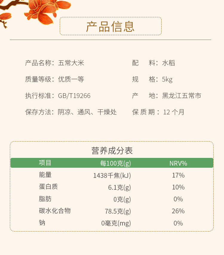 商品名称:乐养优品 五常大米吉祥如意5KG 6973658150189