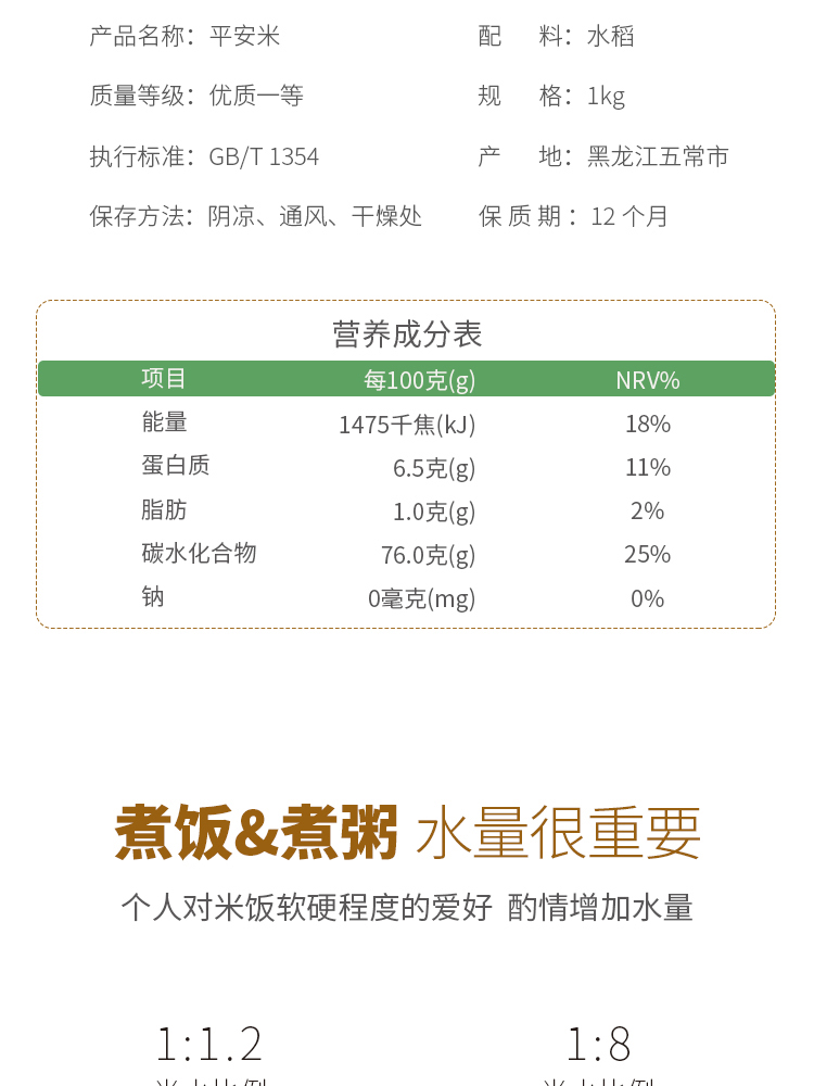 商品名称:乐养优品 平安米1KG 6973658150271