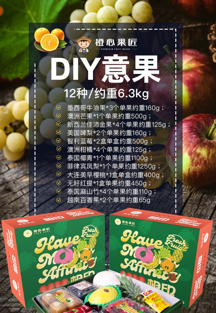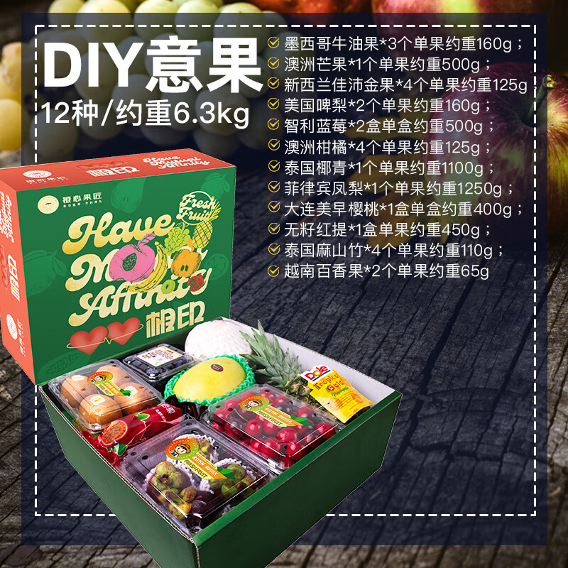 橙心果匠 DIY意果-1288型水果礼盒套餐 约重6.3kg 6977075600081