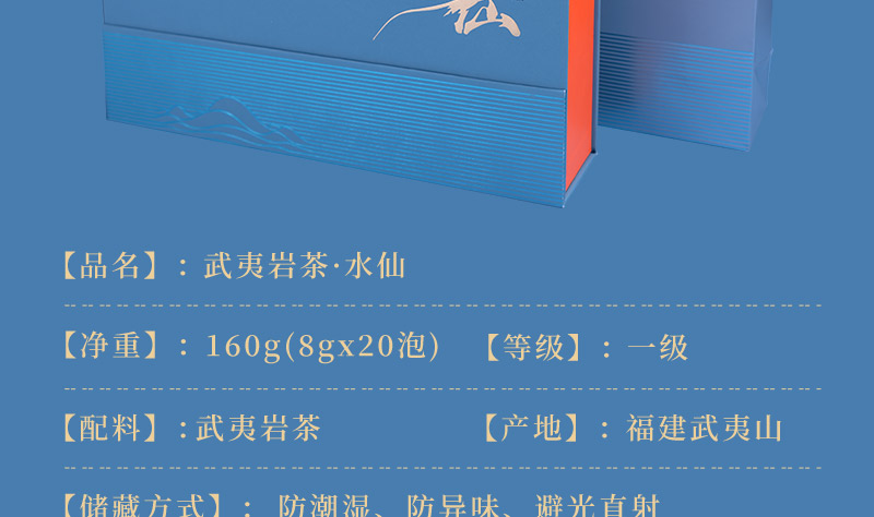 商品名称:J-吉华湖夏武夷茗茶水仙礼盒装茶叶8g*20泡 160克/盒 吉华湖夏精美手提茶叶礼盒