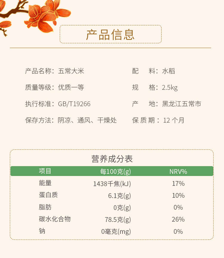 商品名称:乐养优品 五常大米吉祥如意2.5KG 6973658150165