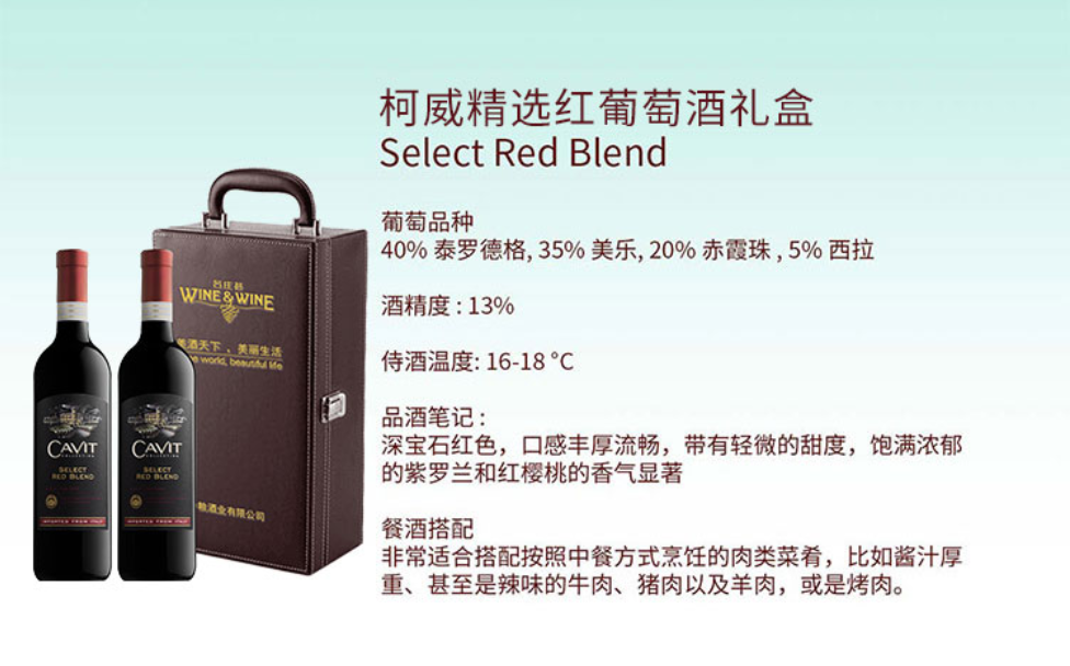 商品名称:中粮 名庄荟意大利-柯威精选红葡萄酒礼盒(中粮原瓶进口) 750ml*2瓶 ECS035414