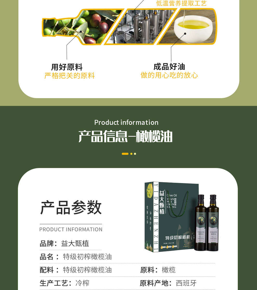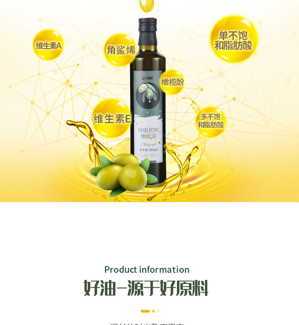 商品名称:益大甄植 特级初榨橄榄油 500mLx2