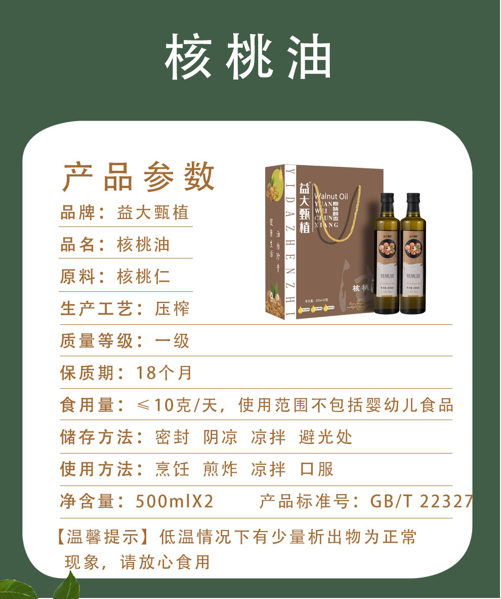 商品名称:益大甄植 核桃油 500mLx2